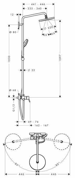 Hansgrohe Croma 220 Showerpipe 27222000, хром