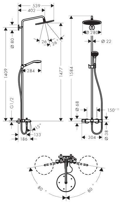 Hansgrohe Croma Select 280 Air 1jet Showerpipe 26792000, хром