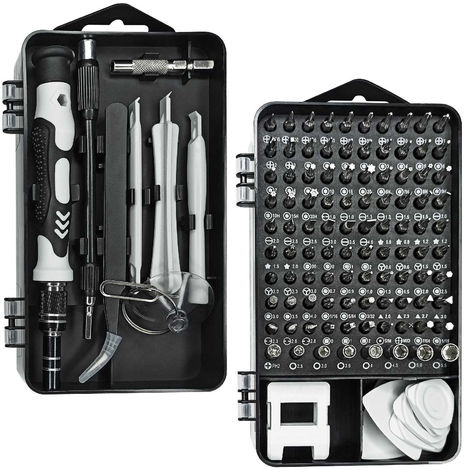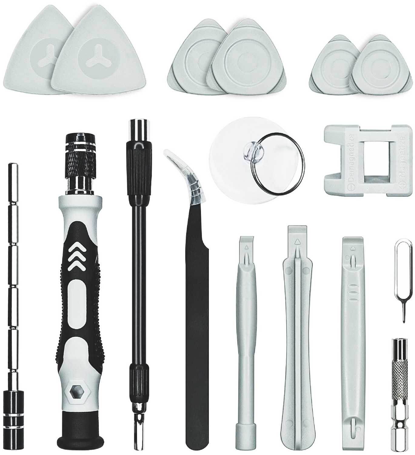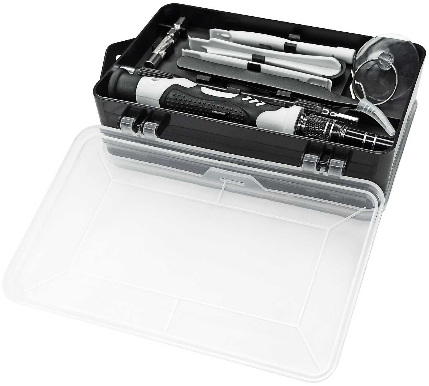 - Включает все необходимые виды насадок, включая дубликаты часто используемых (плоские, крестовые, Torx, шестигранные), что позволяет разбирать смартфоны, ноутбуки, ПК и геймпады без дополнительных покупок.