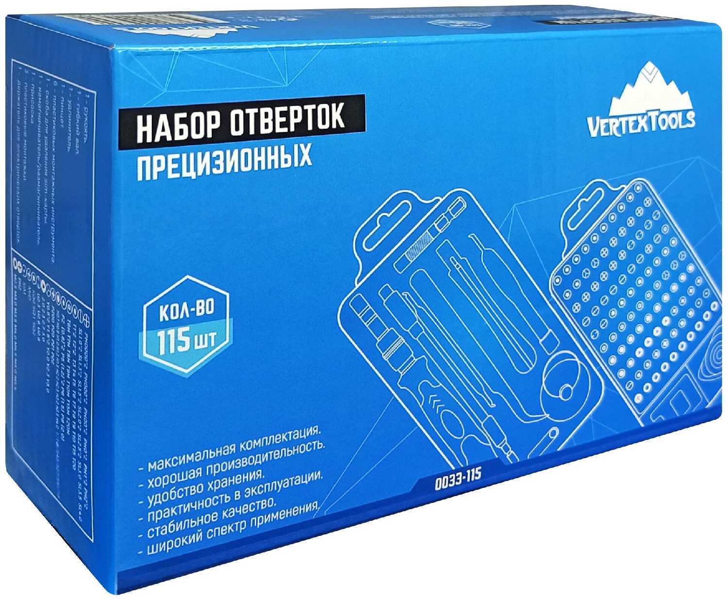 Характеристи VertexTools для точных работ 115 предметов 1/8 со сменными насадками в кейсе