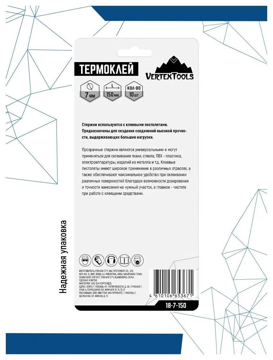 18 отзывов пользователей o VertexTools Клеевые стержни 7х150 мм, 10 шт.