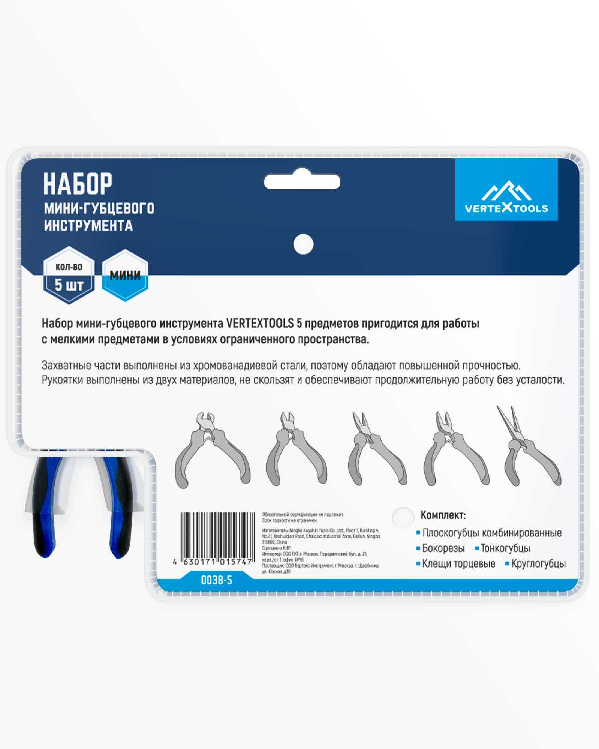 Характеристи VertexTools Набор плоскогубцев (5 шт.)