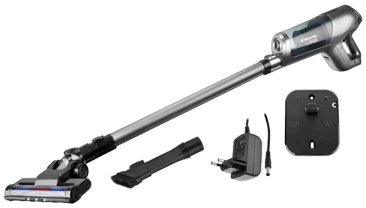 8.9/10 балловBRAYER BR4263, 2в1,135 Вт, контейнер 1л, батарея 29.5 В, Li-Ion 2200 мА/ч, турбощетка с LED, база д/хранения