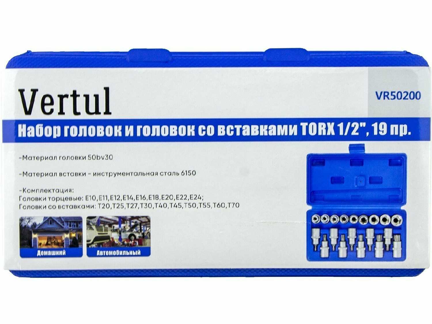 19 отзывов пользователей o Vertul Набор головок 1/2" со вставкой HEX 100 мм 9 предметов (VR50194)