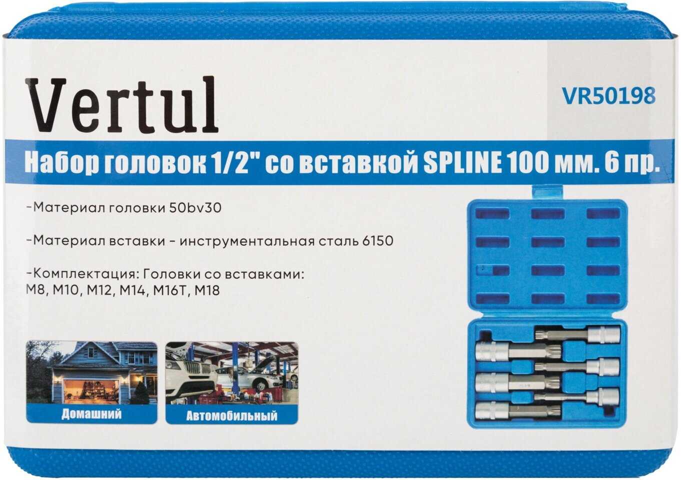 11 отзывов пользователей o Vertul Набор головок 1/2" со вставкой SPLINE 100 мм 6 предметов (VR50198)