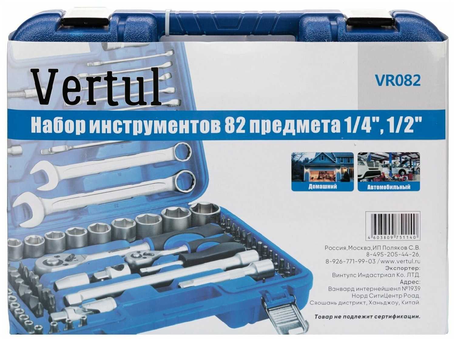 Характеристи Vertul Набор инструментов 82 предмета (VR082)