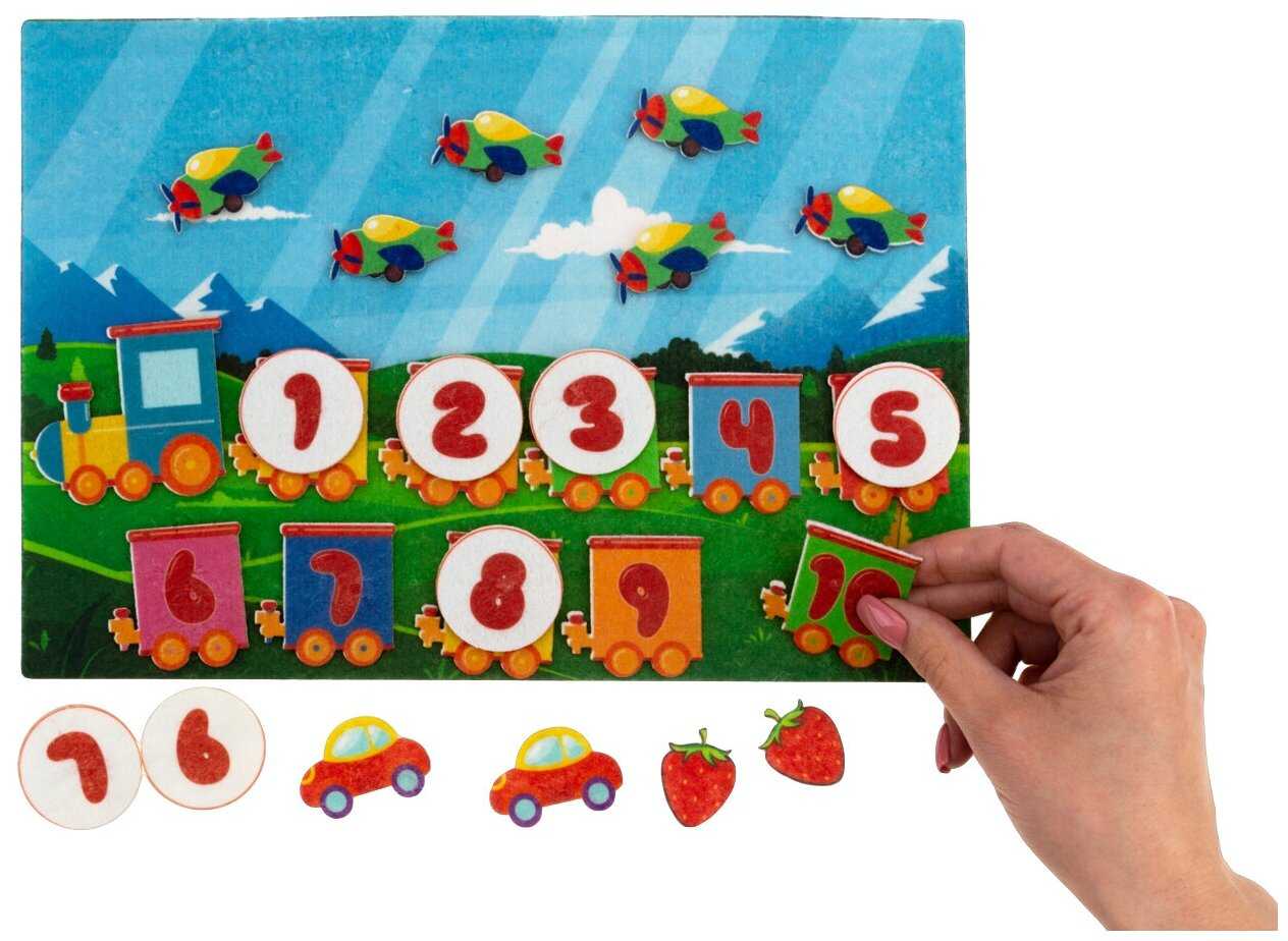1 отзывов пользователей o Веселые липучки Обучающая игра из фетра на липучках Паровоз с цифрами