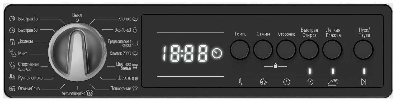 | Программы : | быстрая стирка, гипоаллергенная стирка, дополнительное полоскание, ежедневная стирка, отжим, полоскание, предварительная стирка, предотвращение сминания, ручная стирка, стирка верхней одежды, стирка деликатных тканей, стирка детских вещей, стирка джинсов, стирка смешанных тканей, стирка спортивной одежды, стирка хлопка, стирка цветных вещей, стирка черных вещей, стирка шерсти, экономичная программа |