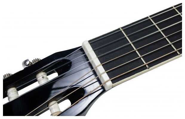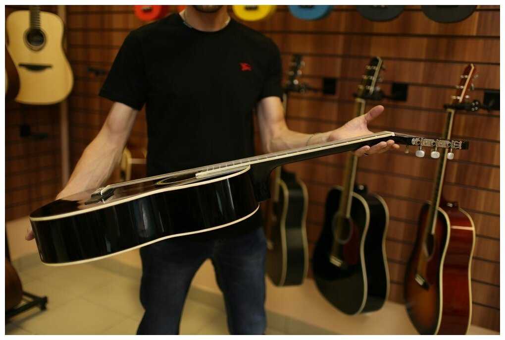 - - Самый большой минус заключается в том что у гитары слишком высоко расположены струны над грифом, это вы можете увидеть на фото. Иза этого новичкам будет крайне сложно зажимать аккорды. И вообще это очень плохо. Струны можно опустить самостоятельно, но это сложно. Чтобы не сделать гитаре плохо лучше отдать её в любой музыкальный магазин на ремонт, и вам там опустят струны, стоит это максимум 1000 руб. Ещё подшлифуют гриф, и приведут гитару в порядок, 2 минус у гитары с задней стороны очень много микро царапин, хоть гитара и не б/у, ещё она совсем немного была испачкана в каком-то масле.