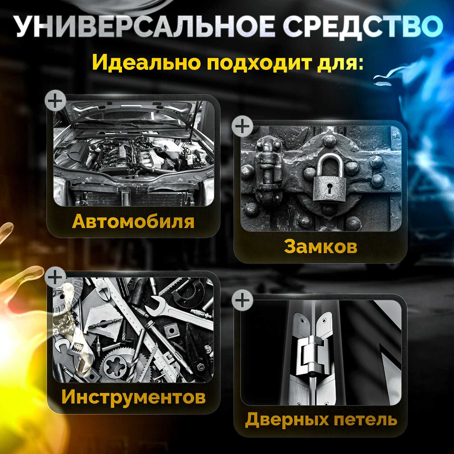 Область применения : | ШРУС, двигатель, замки и петли, зубчатые передачи, карданный вал, клеммы аккумулятора, коробка передач, направляющие, обод покрышки, подшипники, поршни, приводные ремни, резиновые уплотнители, резьбовые соединения, ролики ГРМ, седельно-сцепное устройство, стекло, суппорты, тормозная система, форсунки, цепи, шаровые опоры, шлицевые |