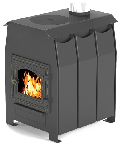 - + Чугунный колосник, чугунная поверхность для нагрева посуды, металл в местах сильного нагрева толще чем 4мм. Стеклянная дверь на любителя, но мне нравится. Длительное горение есть, но конечно прогорает гораздо быстрее чем заявлено. Очень выручают экраны по бокам, не так жарит предметы сбоку, но конвекция воздуха видна не вооружёнными взглядом.