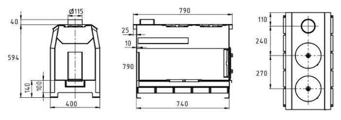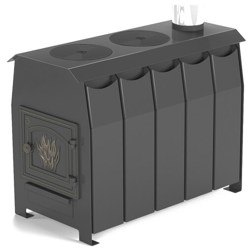 - + Толстый металл.Длинный пламегаситель. По бокам конвекционные трубы. Две конфорки.