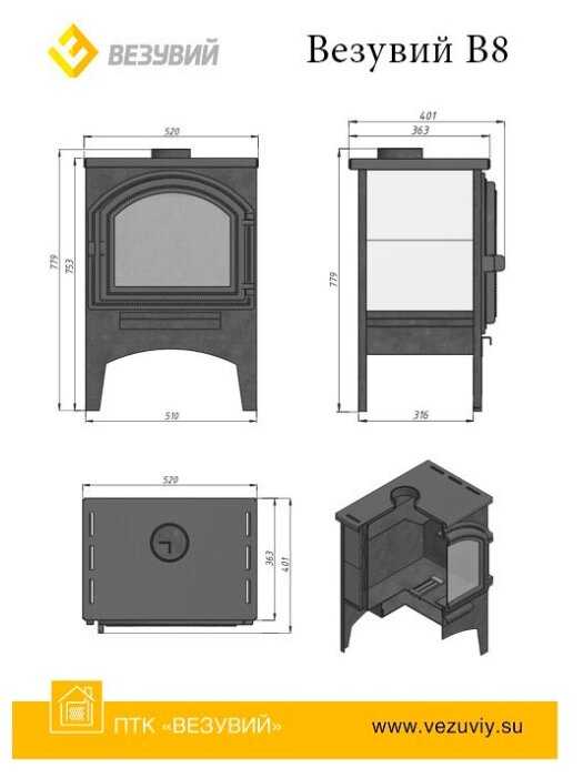 | Дополнительная информация : | печь укомплектована чугунным колосником и чугунной герметичной дверцей Везувий 217 с огнеупорным стеклом |