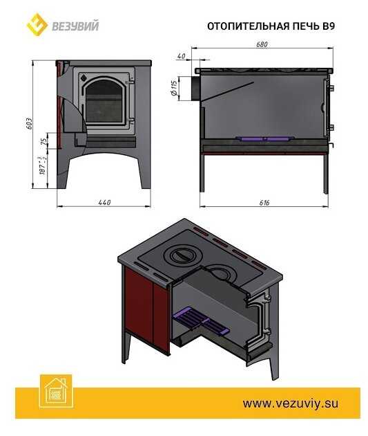 | Дополнительная информация : | печь укомплектована чугунным колосником и чугунной не герметичной дверцей Везувий ДТ-4 |