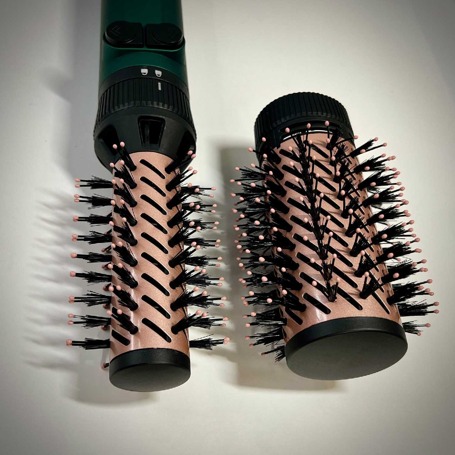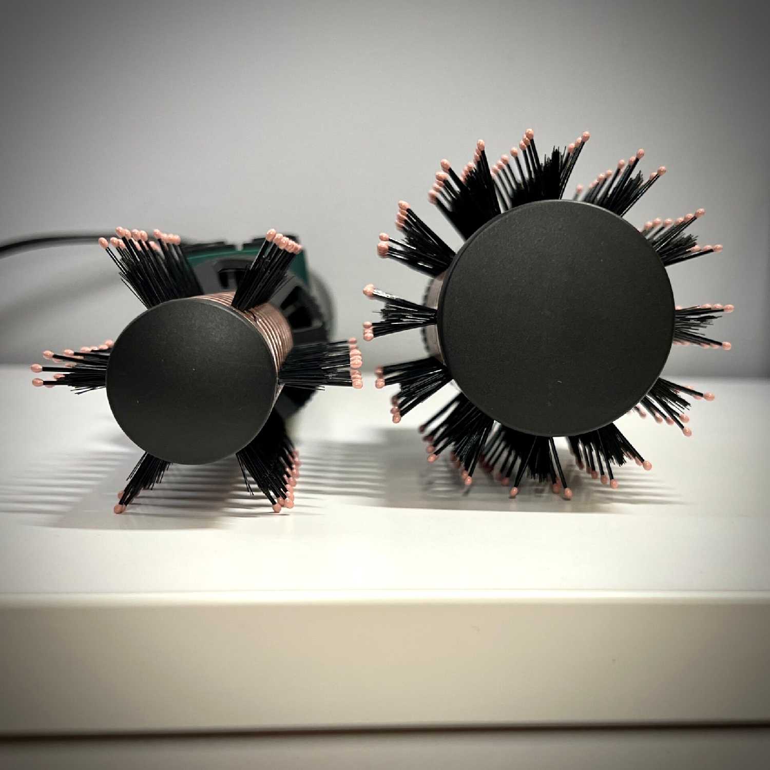 - - насадка с меньшим диаметром путает волосы, нужно приспособиться к ней. щётка большого диаметра удобная, но у неё отваливаются щетинки.