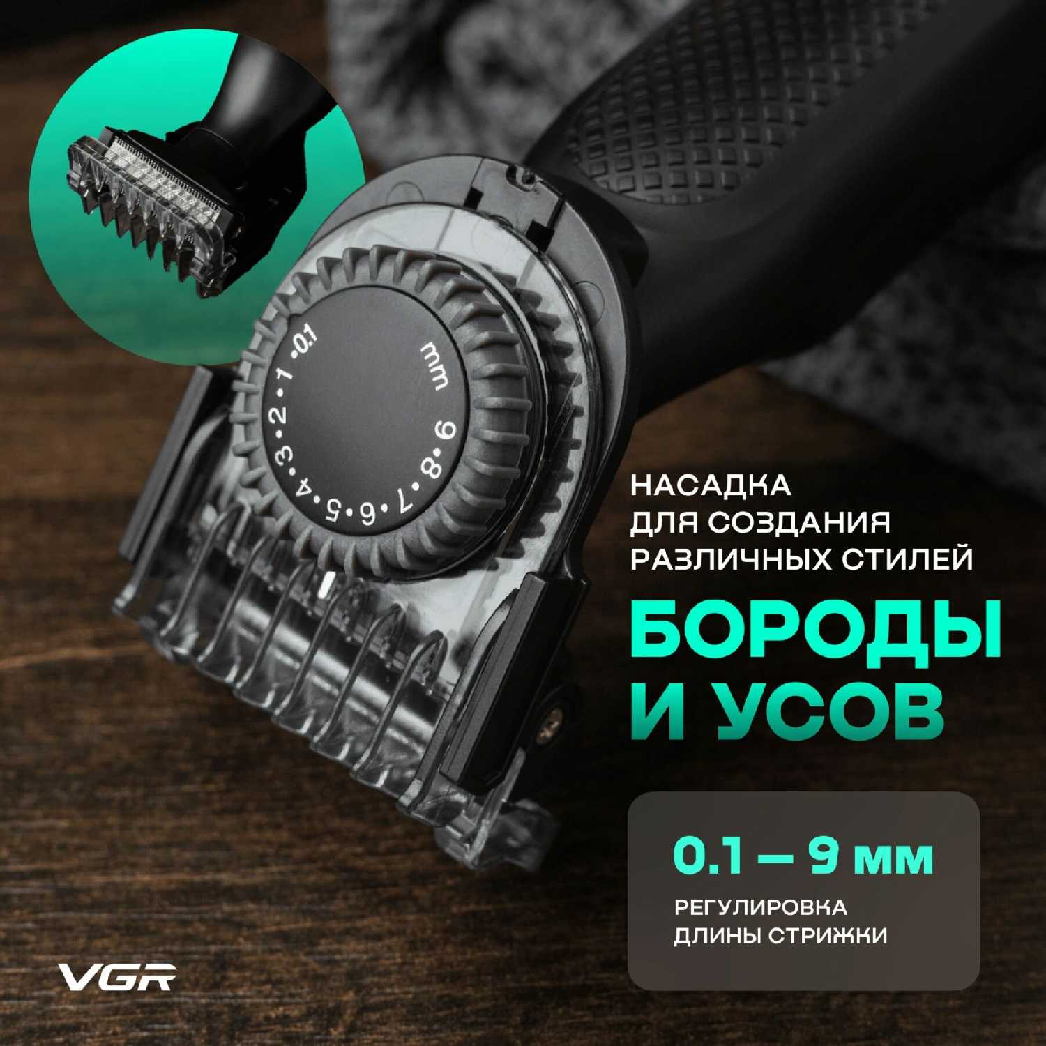 | Дополнительная информация : | VGR V-360 – это идеальный помощник для мужчин, стремящихся поддерживать стильный и ухоженный внешний вид. Триммер для бороды и усов сочетает в себе функции портативного триммера и электробритвы, что делает его универсальным инструментом для ухода за волосами на лице и теле. С его помощью вы сможете легко создать красивую линию бороды и усов, а также ухаживать за волосами в интимных зонах, а также на всем теле. |