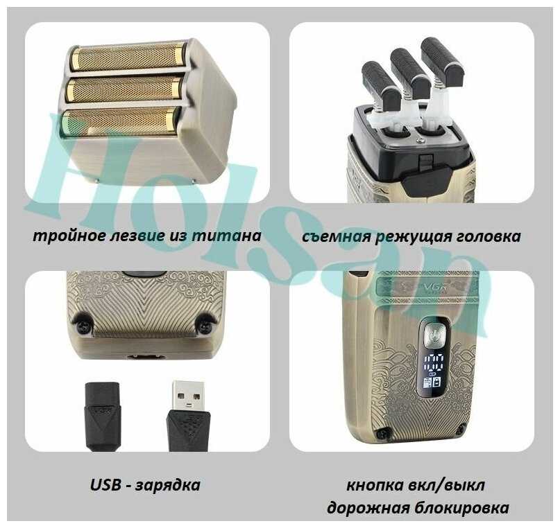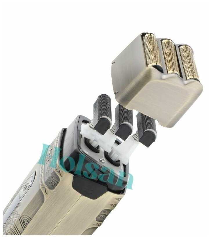 - Три параллельных ножа снимают даже белый пушок на щеках.