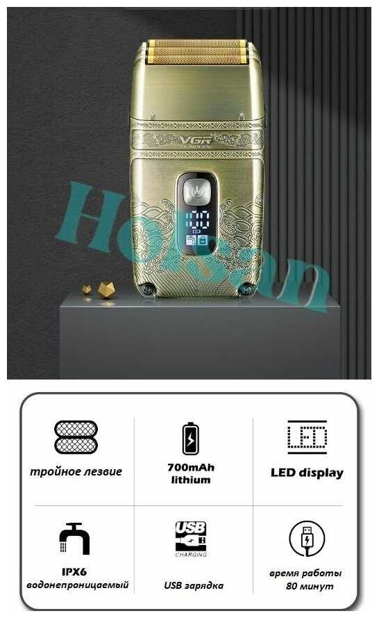 - Высокая мощность двигателя обеспечивает быстрое и тщательное бритье: