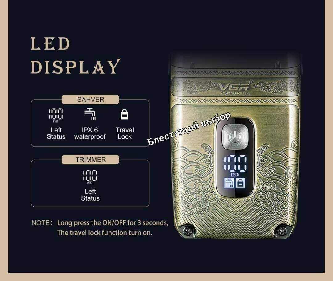 - + выглядит красиво. шейвер устойчив к воде.