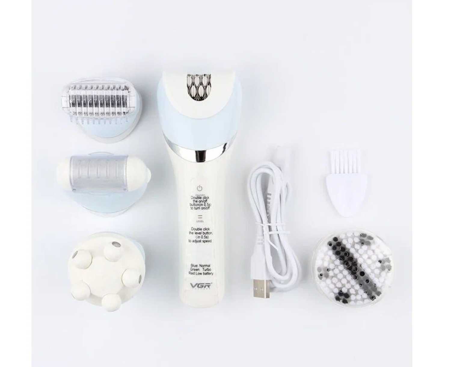 Во-первых спасибо большое за такой классный набор! Я ожидала, что за такую цену приедет что-то по китайски хрупкое, но эта вещь поделила мою жизнь на до и после. Я как-то давно пробовала эпилятор у сестры, он убирал волосы быстрее, но болезненно. С этим эпилятором никакого дискомфорта (не знаю, что на это влияет), совсем не больно и в итоге гладкие ножки. Остальные насадки меня тоже обрадовали, особенно массажер))