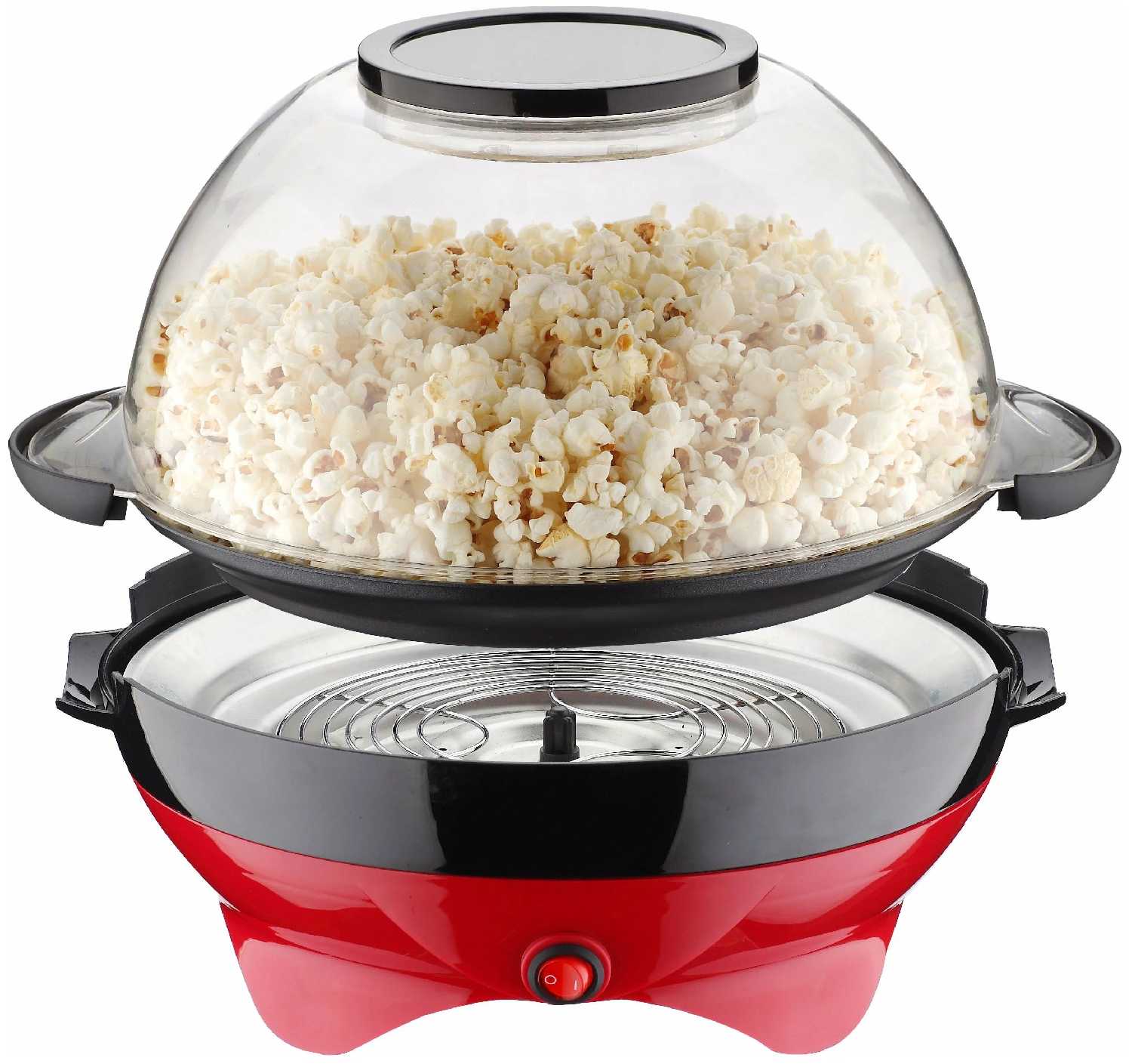 Аппарат демонстрирует высокую эффективность при правильном использовании: зерна кукурузы раскрываются почти полностью (близко к 100%) при соблюдении точного времени приготовления, составляющего 2,5–7 минут. Пользователи единодушно отмечают превосходный вкус попкорна, сравнимый с кинотеатром, особенно при добавлении кокосового масла и специй – это достигается за счет равномерного прогрева и системы перемешивания. Встроенные проволочные лопасти активно перемешивают зерна, минимизируя пригорание, хотя при высокой загрузке моторчик иногда реверсирует или застревает. Ключевой недостаток – критическая зависимость от тайминга: если не перевернуть или не выключить устройство сразу после окончания "стрельбы", нижний слой быстро подгорает. В отличие от воздушных попперов, здесь попкорн получается менее сухим и более хрустящим, но требуется обязательное использование масла – без него результат выходит пресным и сухим.