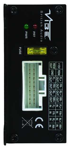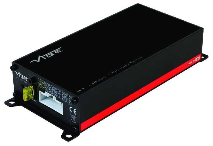 - Выходы RCA на сабвуфер упрощают расширение системы моноблоком, как Vibe Powerbox 400.1.