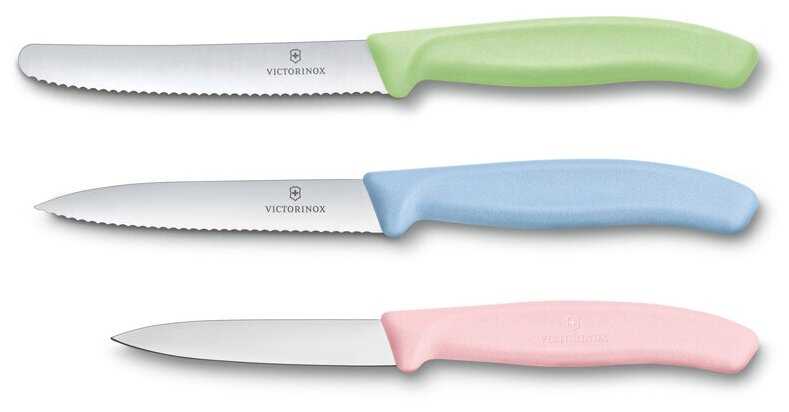 | Дополнительная информация : | Яркий акцент на вашей кухне! В комплекте: Нож для овощей и фруктов с прямым лезвием 8 см, Нож для овощей с волнистой кромкой 10 см, Нож для томатов / столовый нож с волнистой кромкой 11 см |