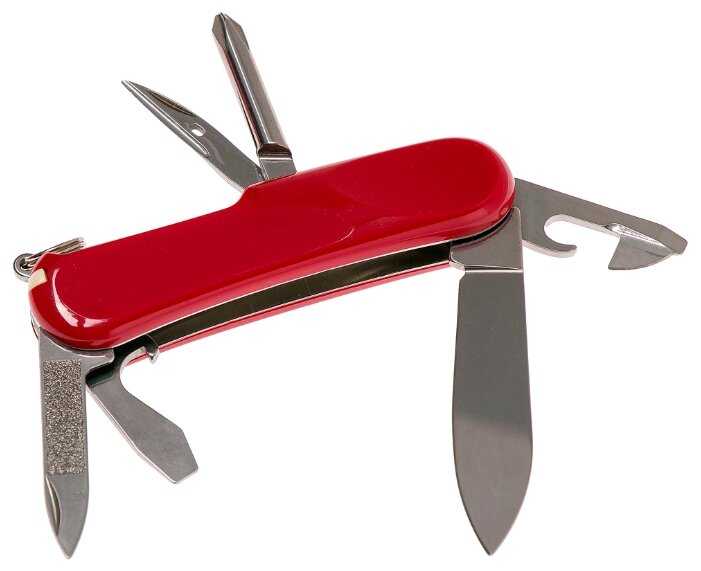 | Инструменты (функции) : | зубочистка, консервный нож, нож, отвертка, открывалка для бутылок, пилка для ногтей, пинцет, шило / кернер |