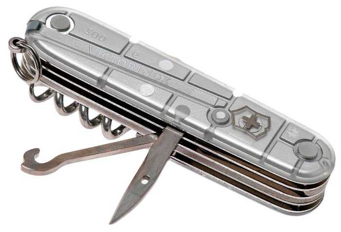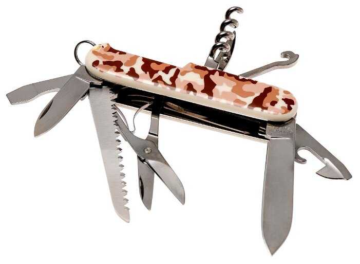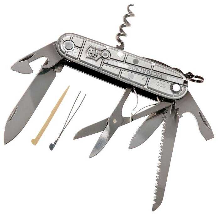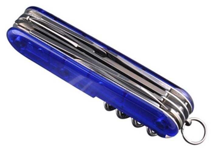Инструменты (функции) : | большое лезвие малое лезвие штопор открывалка для консервных банок отвертка малая отвертка открывалка для бутылок инструмент для снятия изоляции шило кольцо для ключей пинцет зубочистка ножницы пила по дереву универсальный крюк |