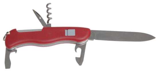 Инструменты (функции) : | большое лезвие штопор консервный нож маленькая отвёртка открывалка для бутылок отвёртка инструмент для снятия изоляции шило кольцо для ключей пинцет зубочистка |