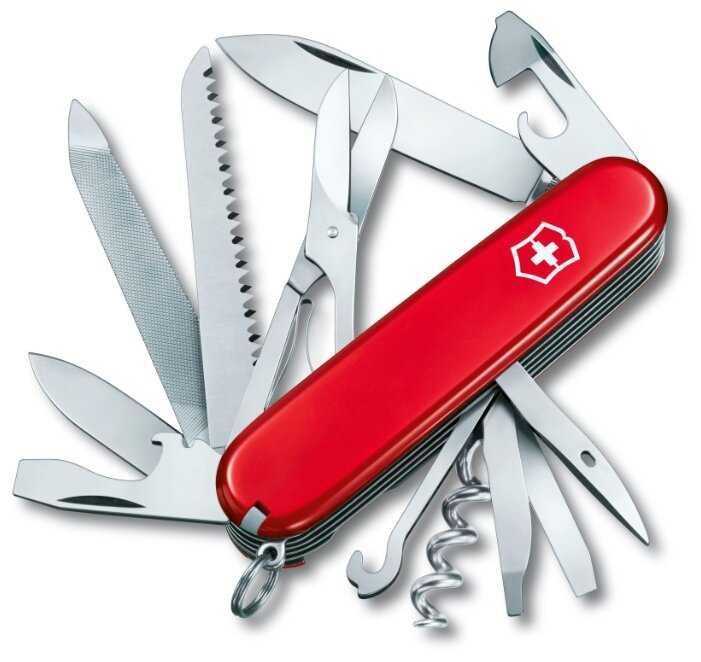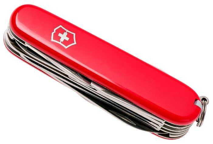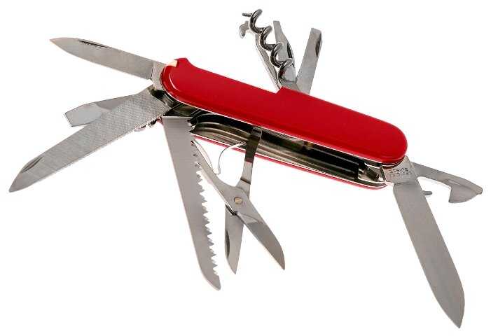 Инструменты (функции) : | большое лезвие малое лезвие штопор консервный нож малая отвертка (также для винта с крестообразным шлицем) открывалка для бутылок отвертка инструмент для снятия изоляции шило кольцо для ключей пинцет зубочистка ножницы многофункциональный крючок пила по д |