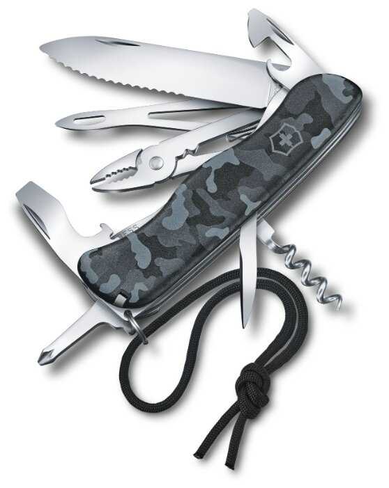 Инструменты (функции) : | фиксирующееся лезвие с серейторной заточкой на 3/4 клинка штопор консервный нож малая отвёртка 3 мм открывалка для бутылок отвёртка 5 мм инструмент для снятия изоляции шило/кернер кольцо для ключей пинцет зубочистка инструмент для открывания корабельных с |