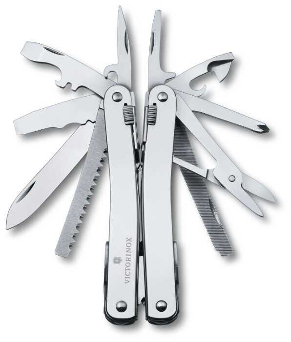 | Инструменты (функции) : | винтовая отвёртка, зубочистка, консервный нож, крючок, кусачки, линейка, напильник, нож, ножницы, острогубцы, отвертка, открывалка для бутылок, пассатижи, пила, плоскогубцы, шило / кернер, штопор |