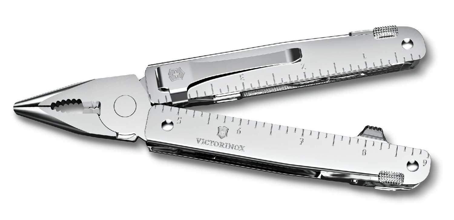 | Инструменты (функции) : | винтовая отвёртка, клипса, консервный нож, крючок, кусачки, линейка, напильник, нож, ножницы, острогубцы, отвертка, открывалка для бутылок, пассатижи, пила, плоскогубцы, шило / кернер, штопор, щипцы |