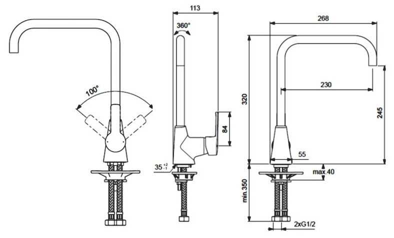 - тип излива: поворотный