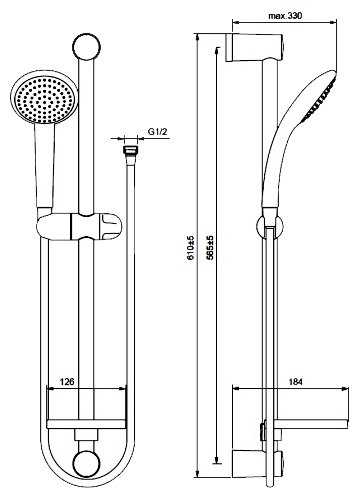 | Высота стойки для душа : | 615 мм |