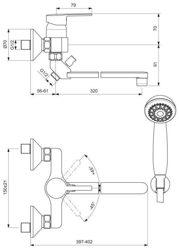 - - Рычаг переключения неудобный, очень маленький. Для перехода в режим душ приходиться делать минимальный напор воды.