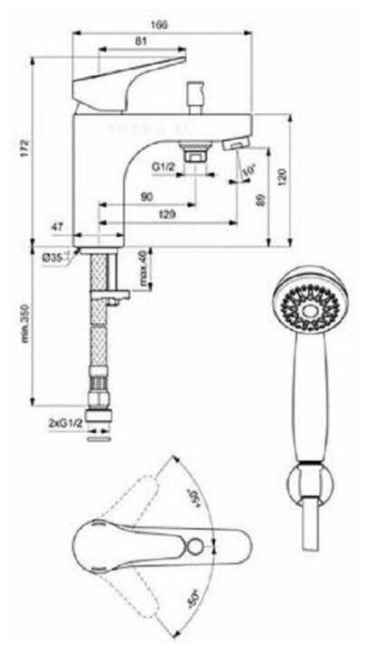 | Комплектация : | лейка, отражатель, ручной душ, смеситель, шланг, эксцентрик |