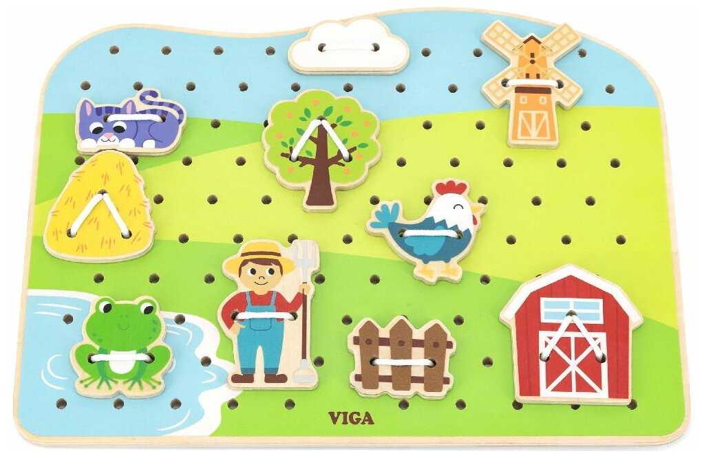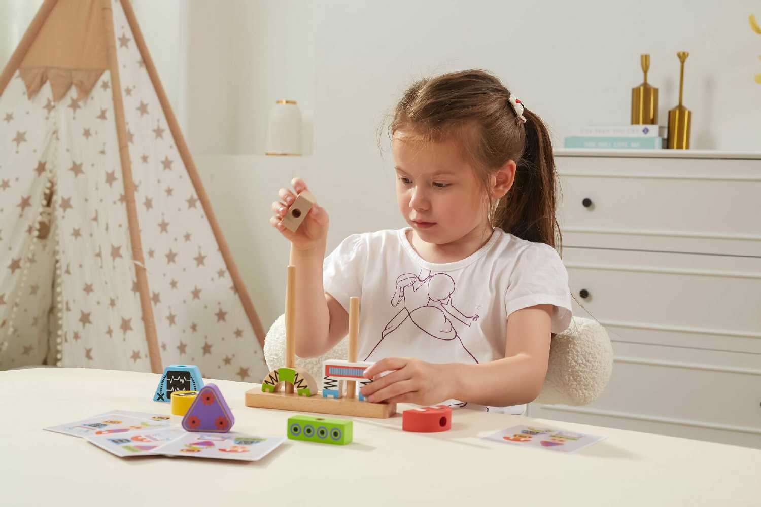 Комплектация : | игра включает в себя деревянную игровую доску, 20 элементов для шнуровки, 3 веревочки и 10 шаблонов, показывающих различные способы привязки элементов к доске. |