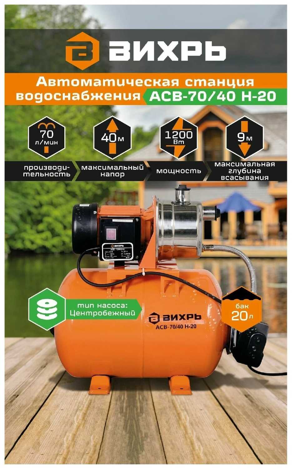 - Тип поверхностного насоса: насосная станция