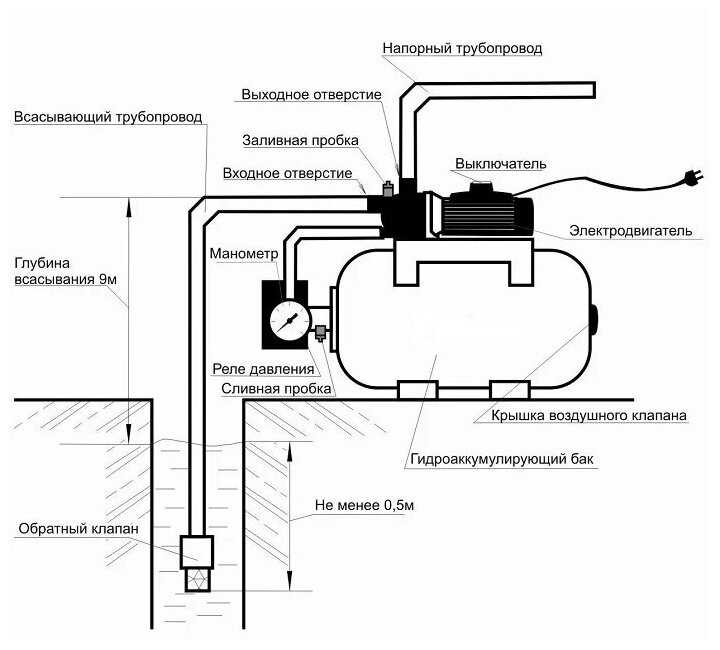 - глубина всасывания 9 м