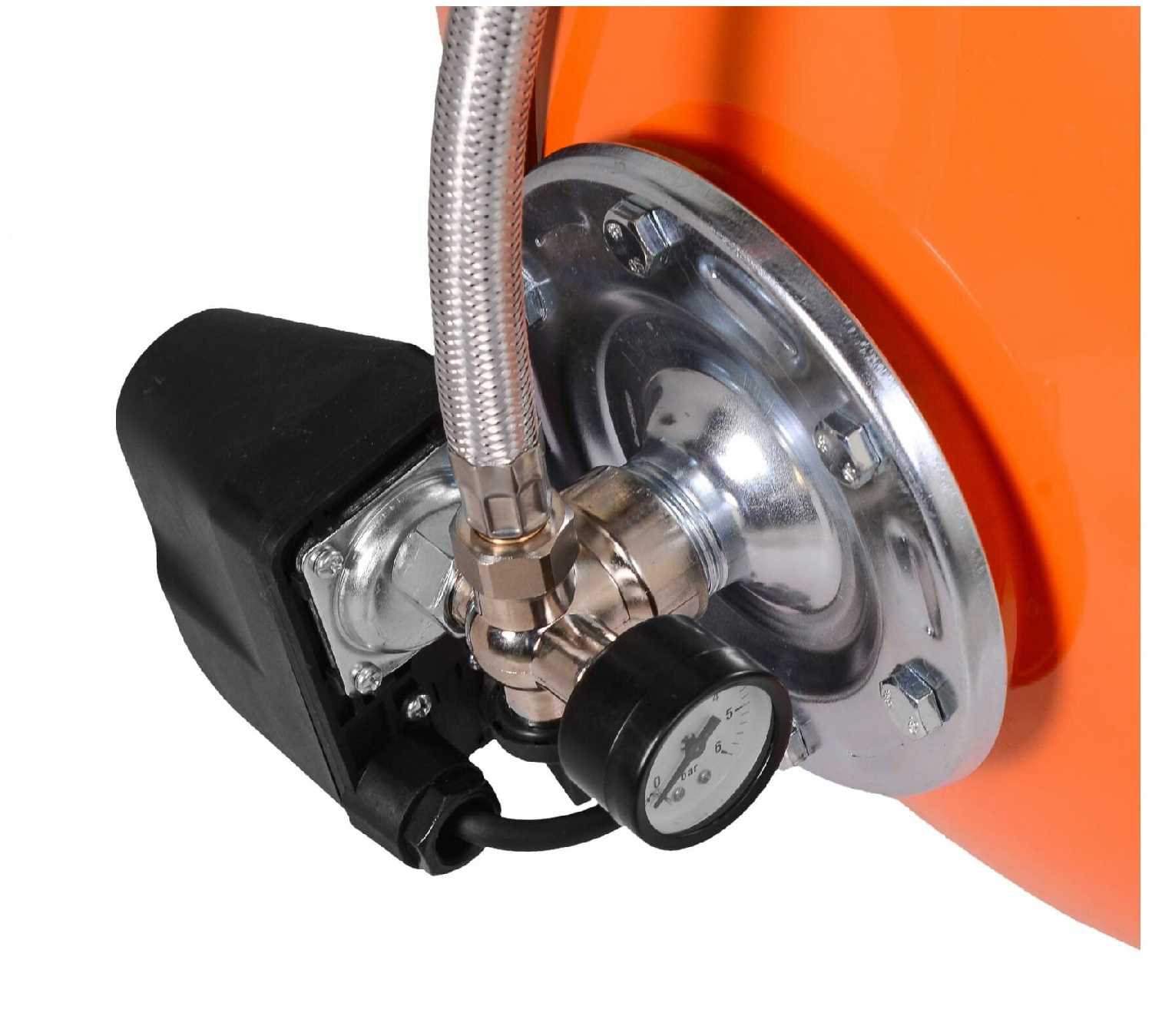 50-литровый бак снижает частоту включений двигателя, экономя ресурс насоса. При отключении электричества запас воды под давлением позволяет временно пользоваться системой. Объём гидроаккумулятора достаточен для семьи из 3-4 человек, обеспечивая плавный старт без гидроударов. -