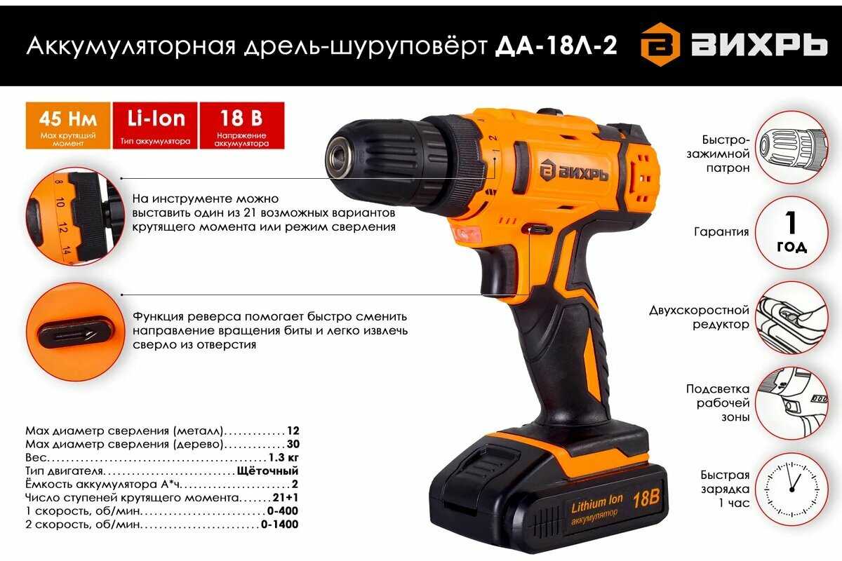 Отзывы о Аккумуляторная дрель-шуруповерт ВИХРЬ ДА-12Л-2К