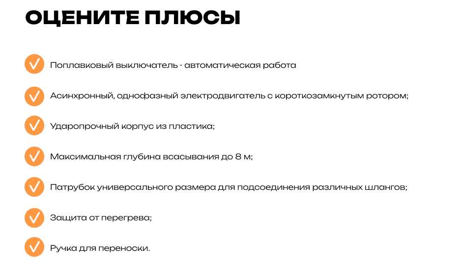 - + Встроенный поплавок позволяет срабатывать при низком уровне воды.