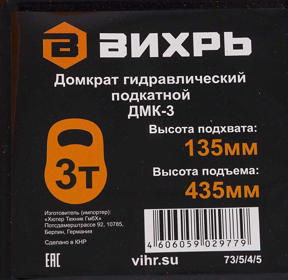 6 отзывов пользователей o ВИХРЬ Домкрат подкатной гидравлический (ДМК-3)
