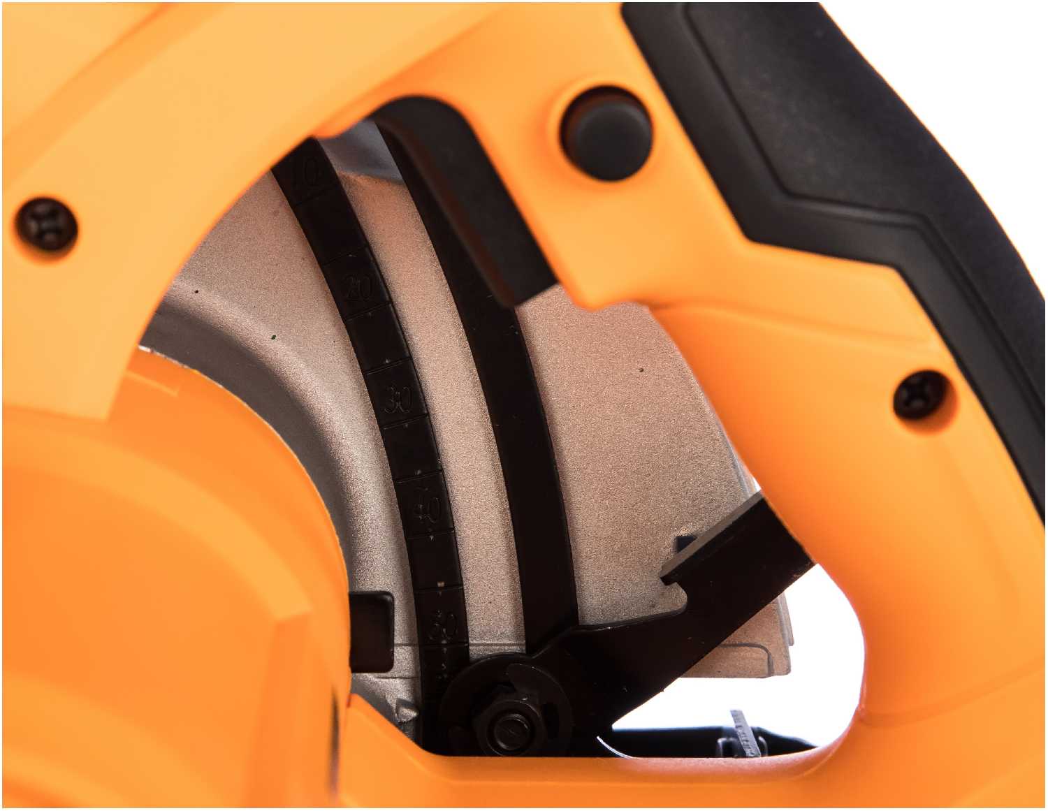 - Надежная регулировка глубины пропила (до 52 мм) и угла наклона: