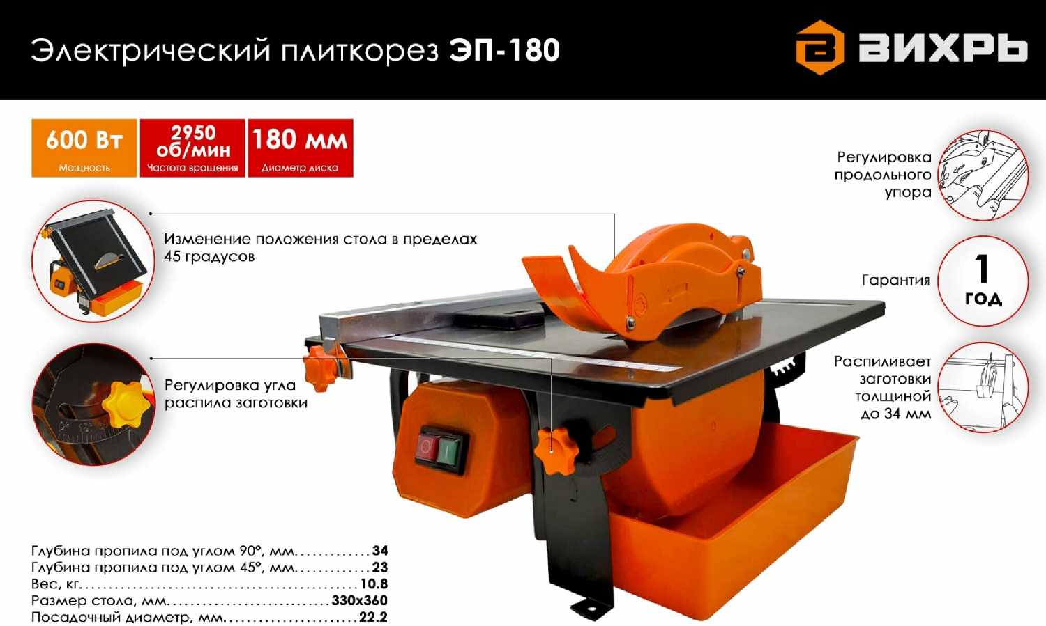 Отзывы о Плиткорез ВИХРЬ ЭП-180 [72/22/1]