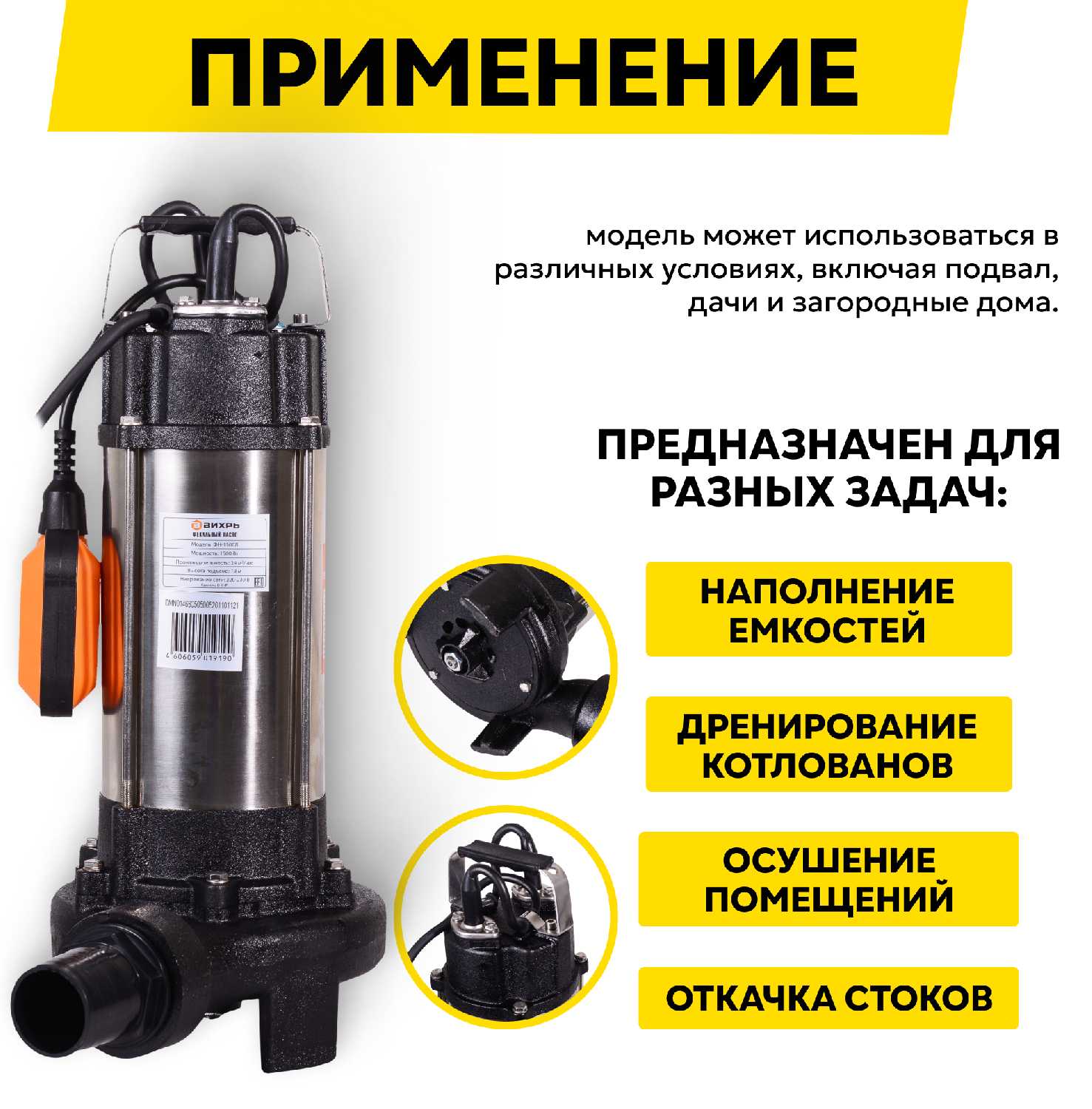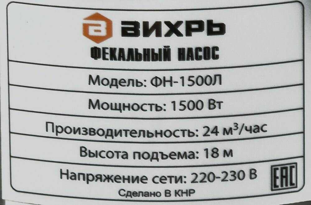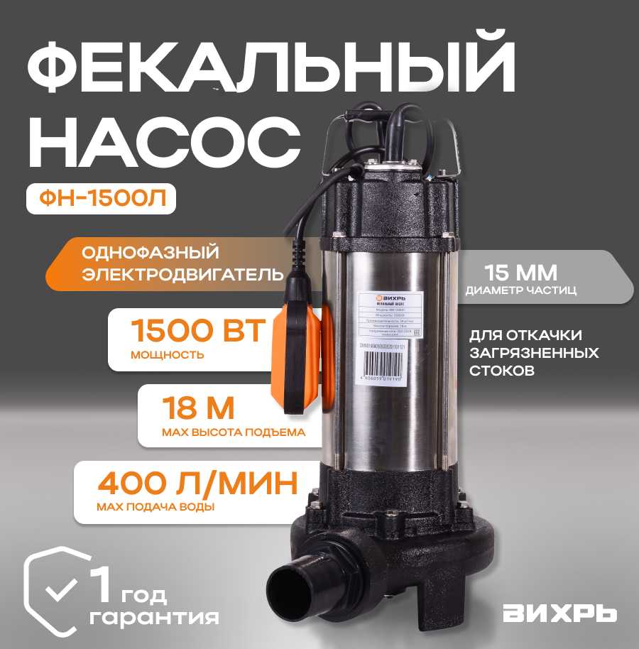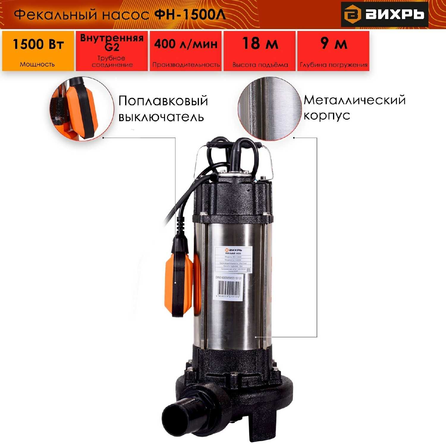 Отзывы о Фекальный насос ВИХРЬ ФН-1500Л