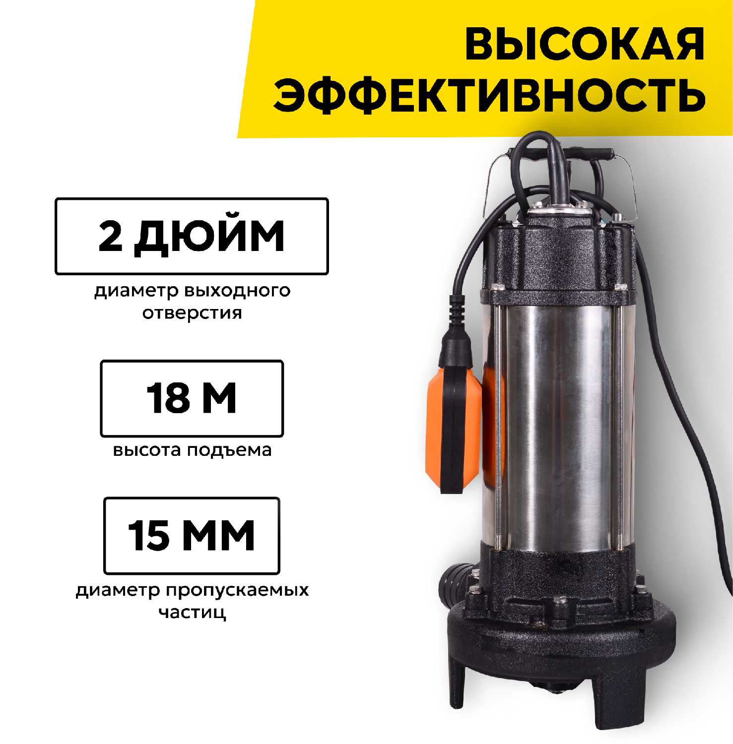 - + Высокая производительность и напор для быстрого откачивания жидкости.