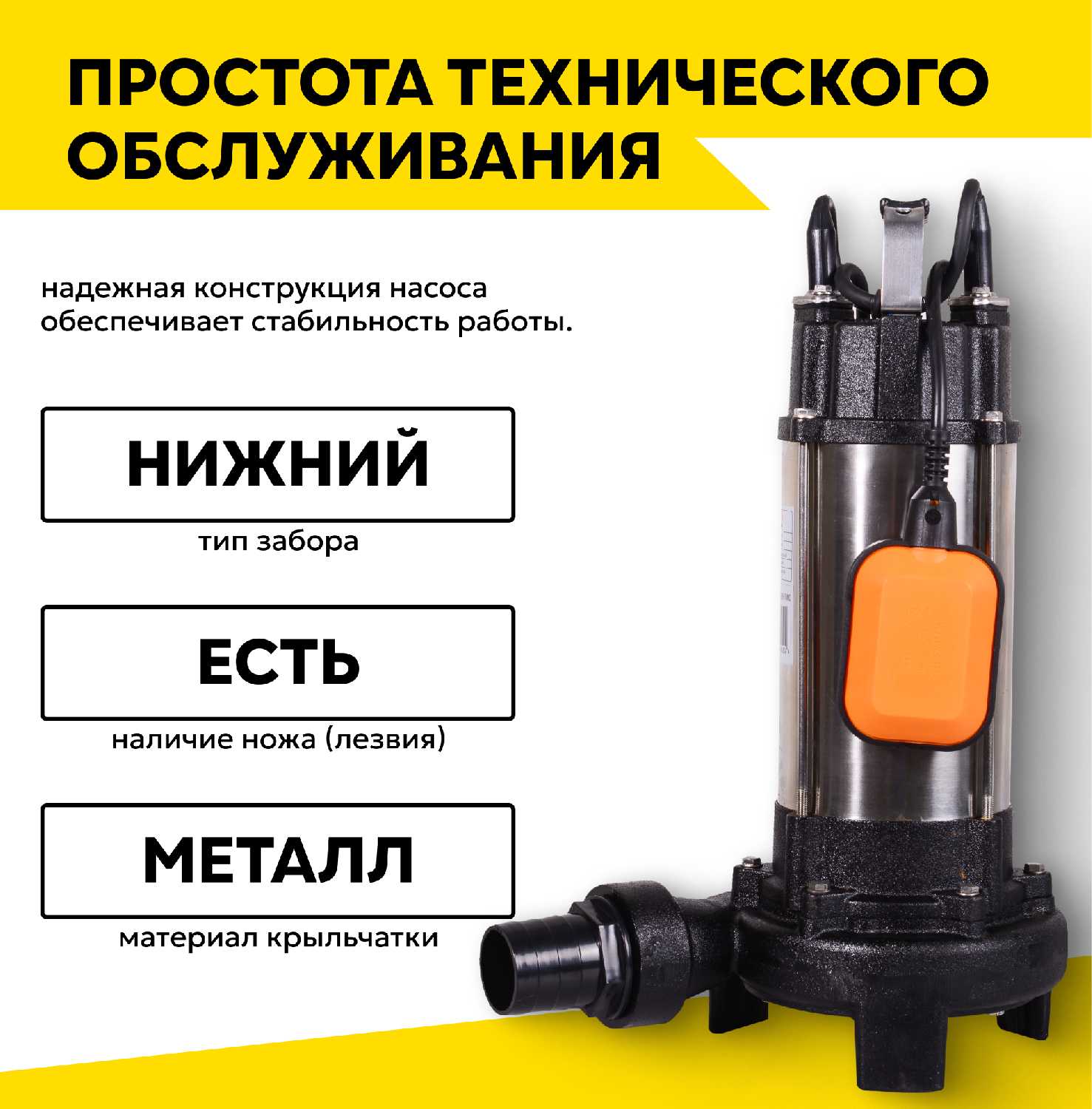 - + Насос обладает хорошей производительностью, справляется со сложными задачами по откачке загрязненной жидкости.